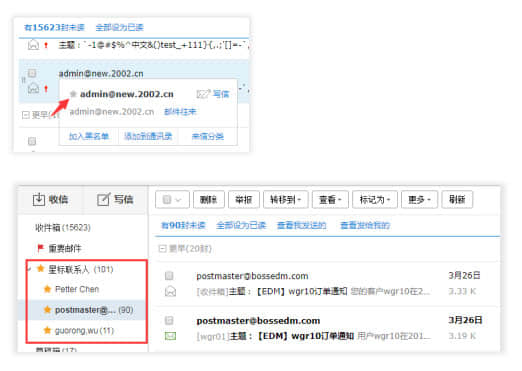 功能更多,空間容量更大,大大提高企業(yè)郵箱的穩(wěn)定高效性,反垃圾反病毒性能更強,郵件收發(fā)速度更快。 擁有企業(yè)郵箱可以為自己的員工設置電子郵箱,還可以根據需要設置不同的管理權限,以及部門成員之間或者公司全體員工之間的群發(fā)功能等等,除了一般的終端郵件程序方式(如outlook)收發(fā)E-mail之外,還可以實現WEB方式收發(fā)和管理郵件,比一般ISP提供的電子郵箱和虛擬主機提供的信箱更為方便。