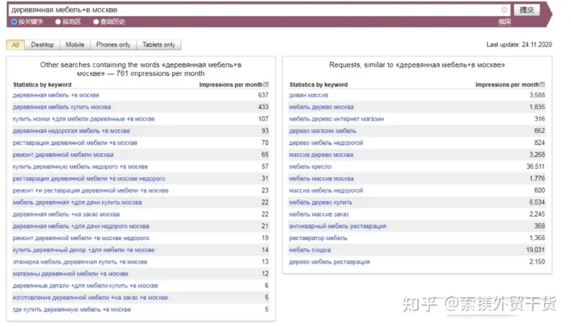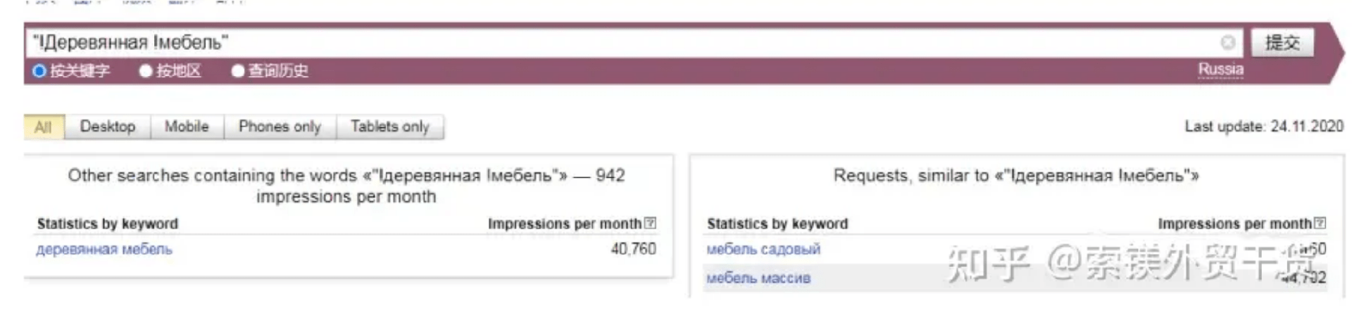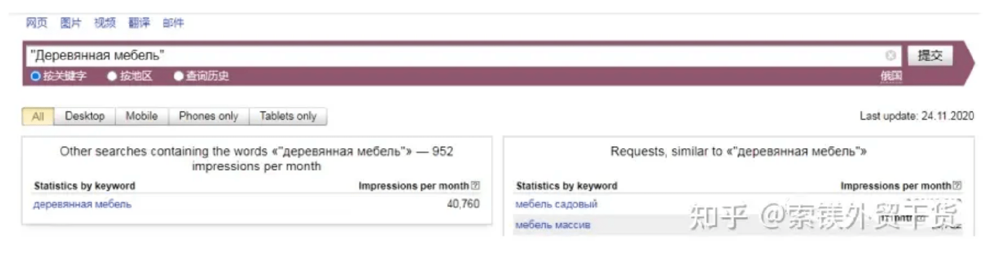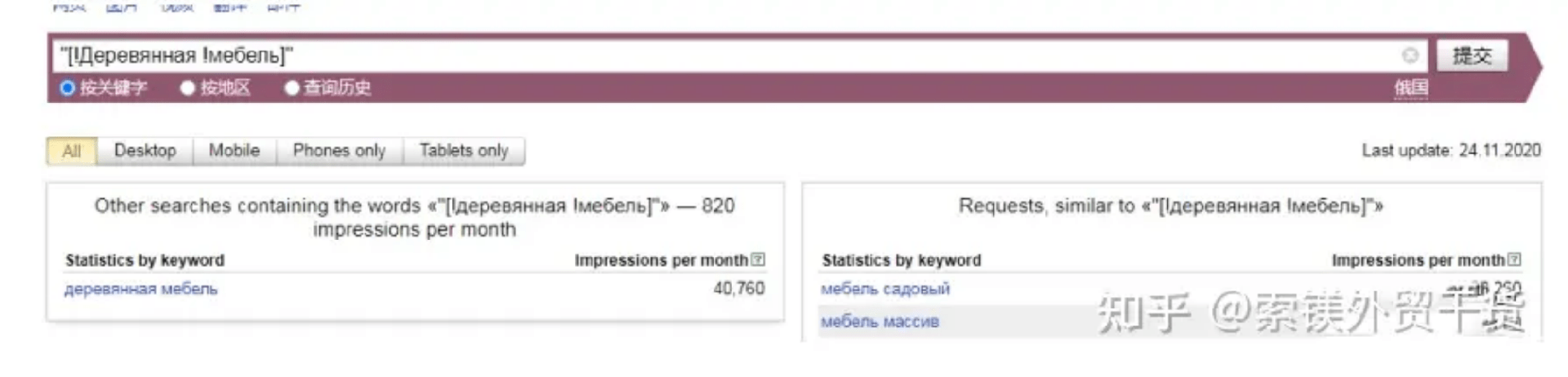 如木質家具在莫斯科,需要在介詞“在”的前面加上“+”,才能得出準確的搜索需求。