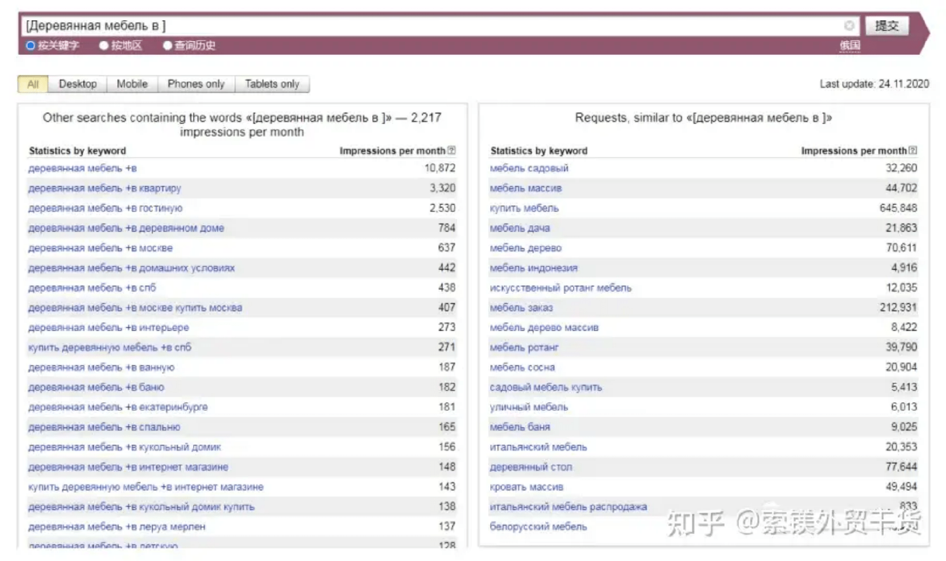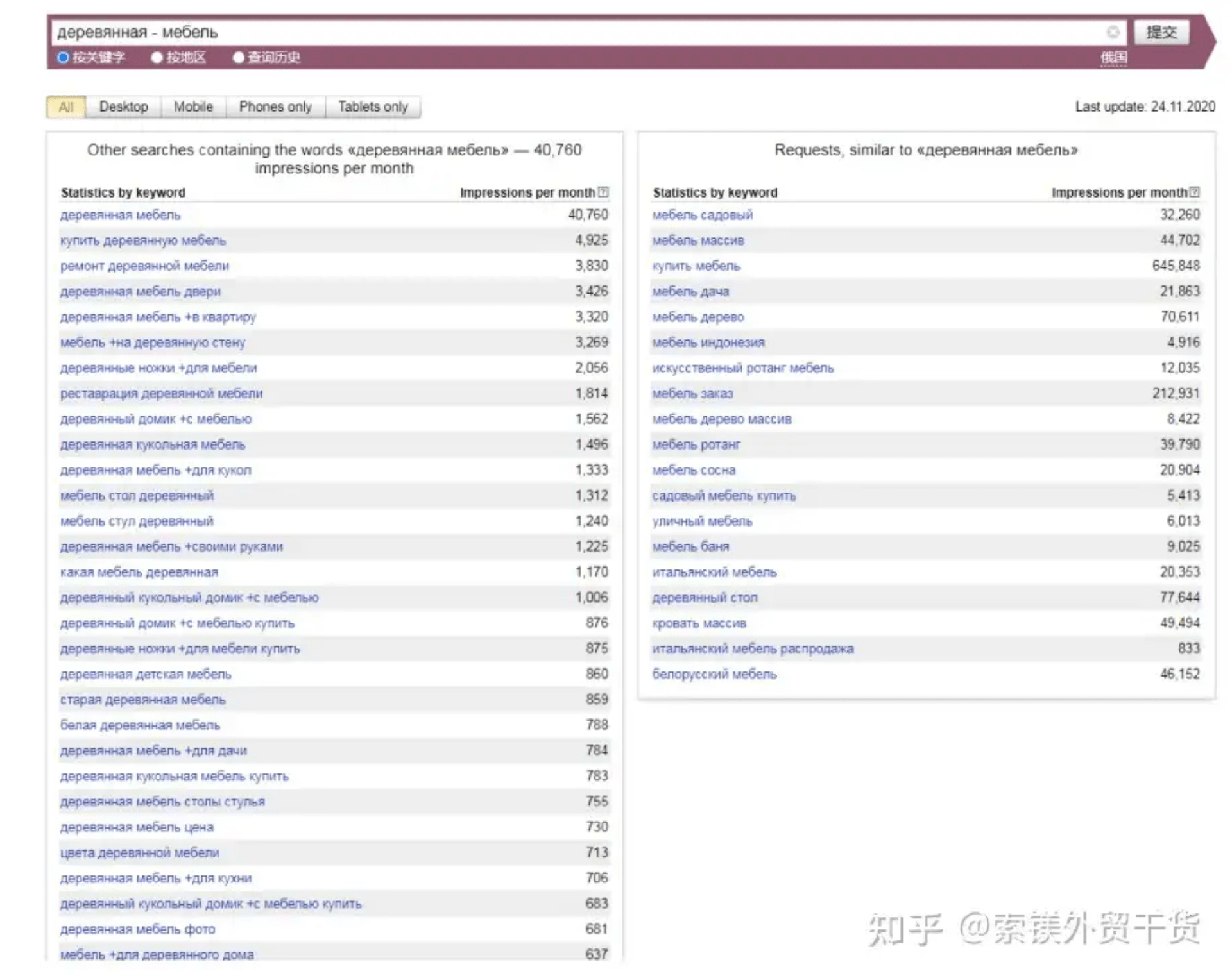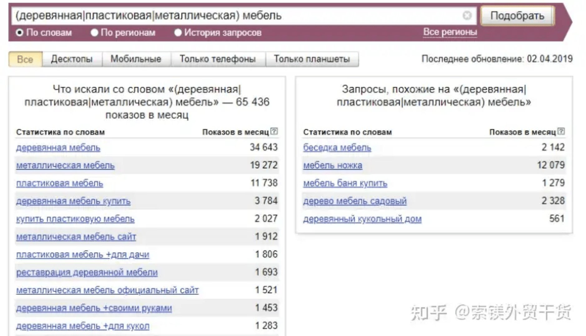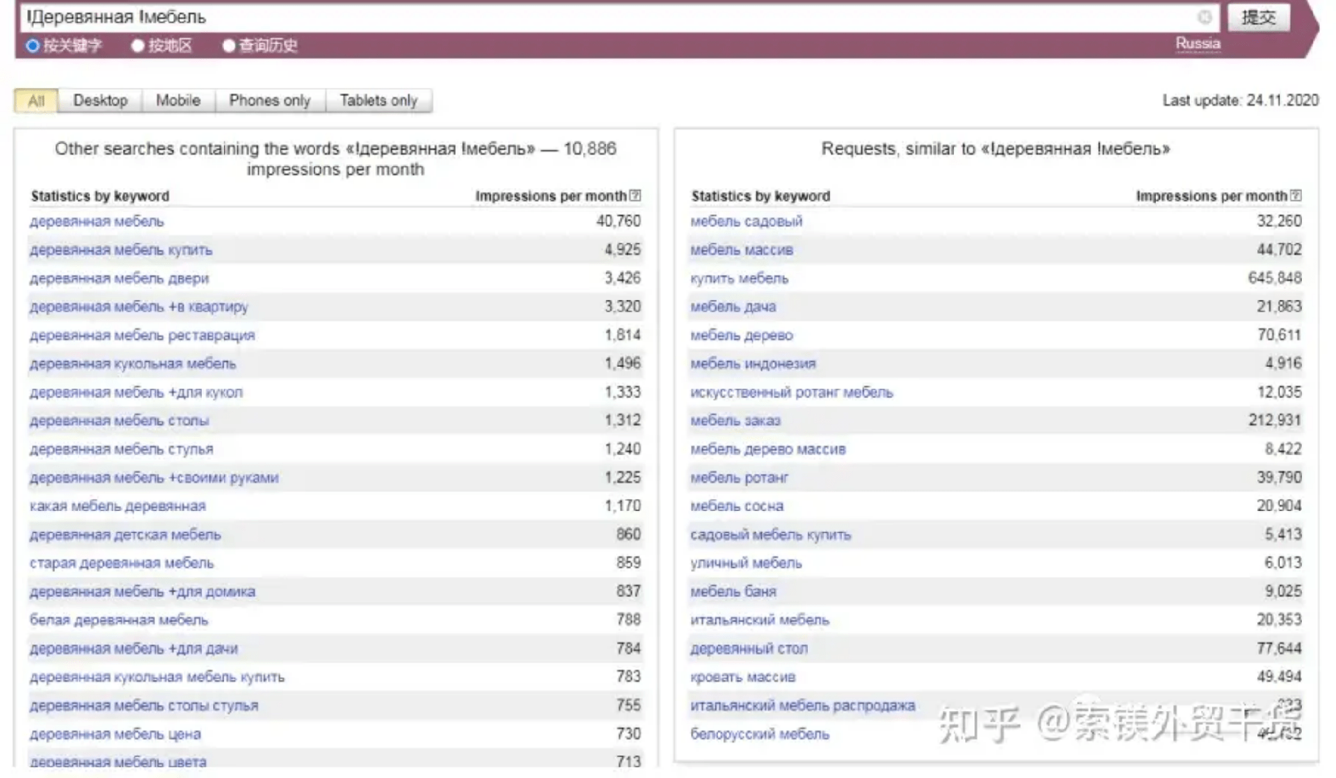 如木質家具在莫斯科,需要在介詞“在”的前面加上“+”,才能得出準確的搜索需求。