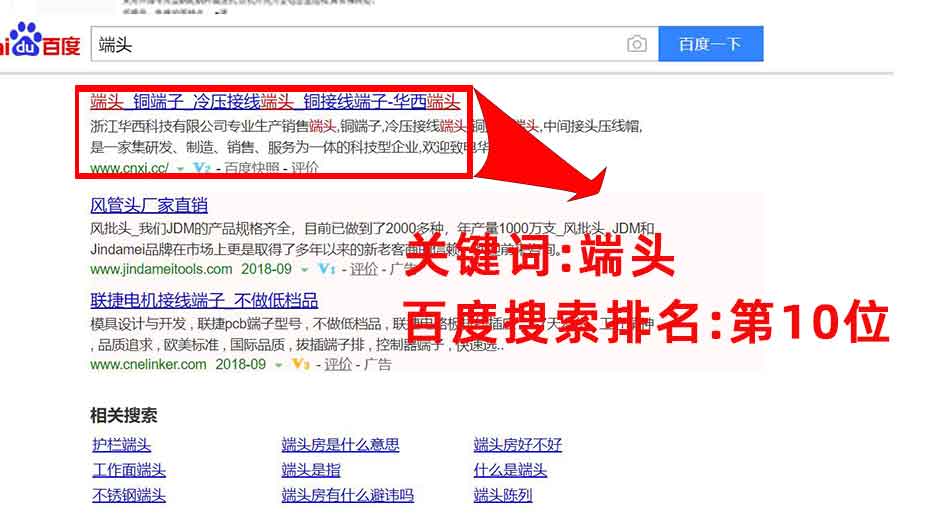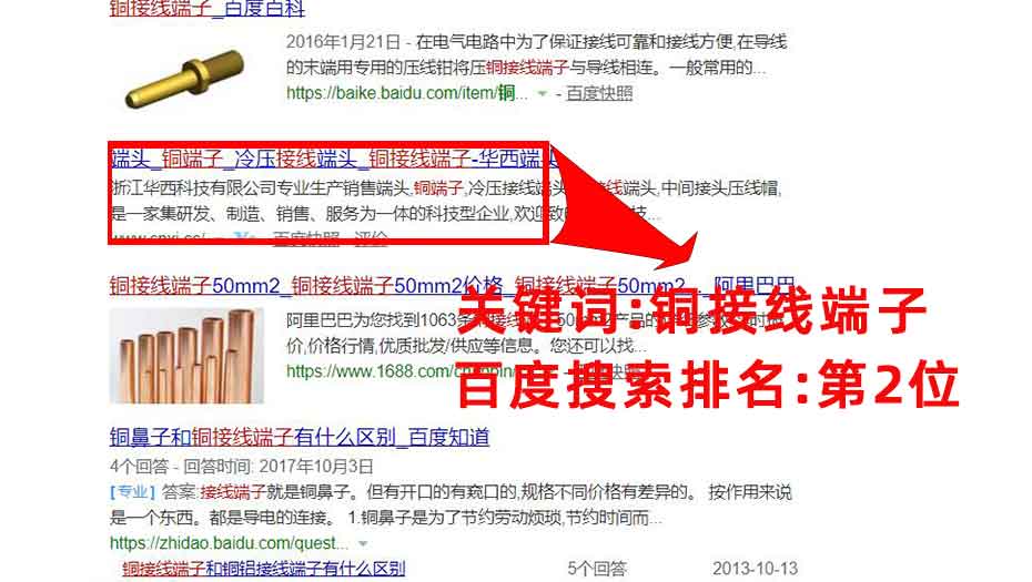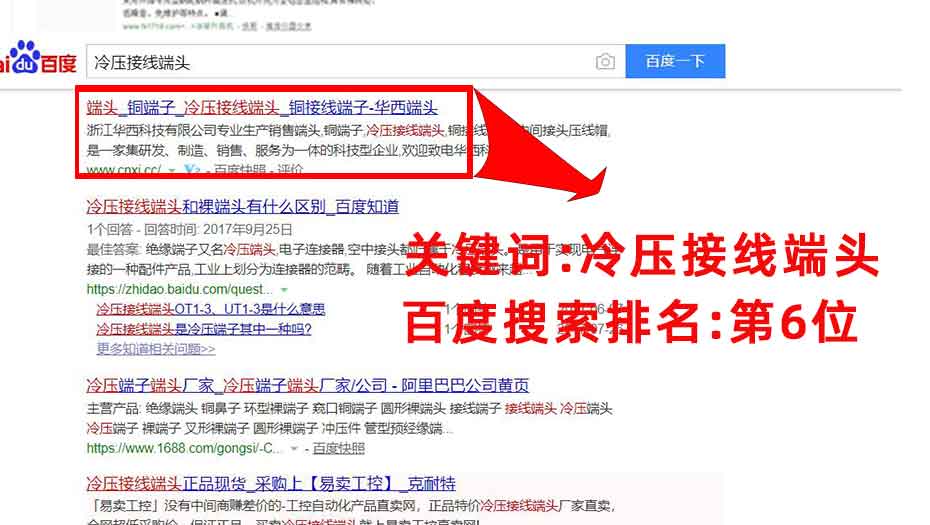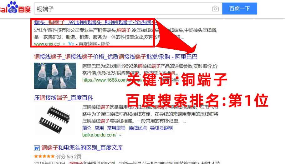 指定主關鍵詞:端頭,銅端子,冷壓接線端頭,銅接線端子,必須要出現在百度首頁.